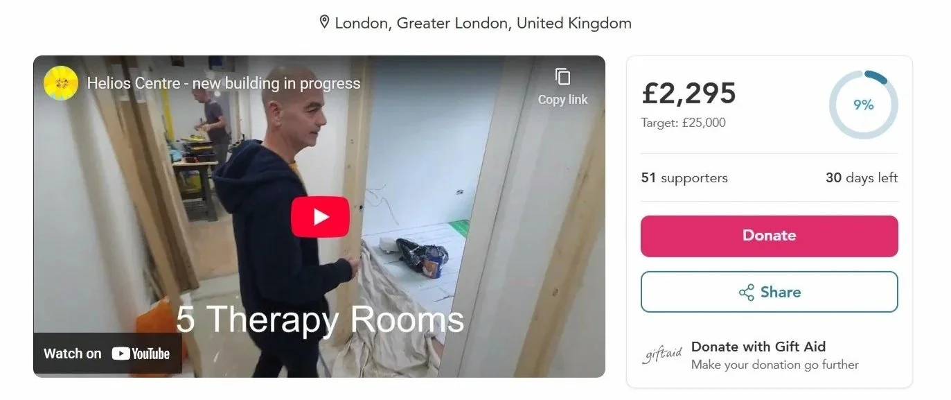 Blue Door recently donated to the Helios Centre who are crowdfunding to refurbish their new home in Holborn.